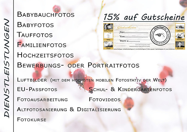 Das Gewinnspiel steht in keiner Verbindung zu Facebook. Es wird in keiner Weise von Facebook gesponsert, unterstützt oder organisiert und begründet keinerlei Rechtsansprüche gegenüber Facebook. Sämtliche Informationen im Rahmen dieses Gewinnspiels werden ausschließlich von fotobuttinger.at bereitgestellt.